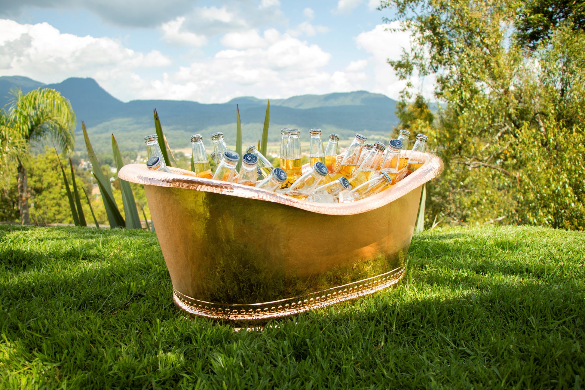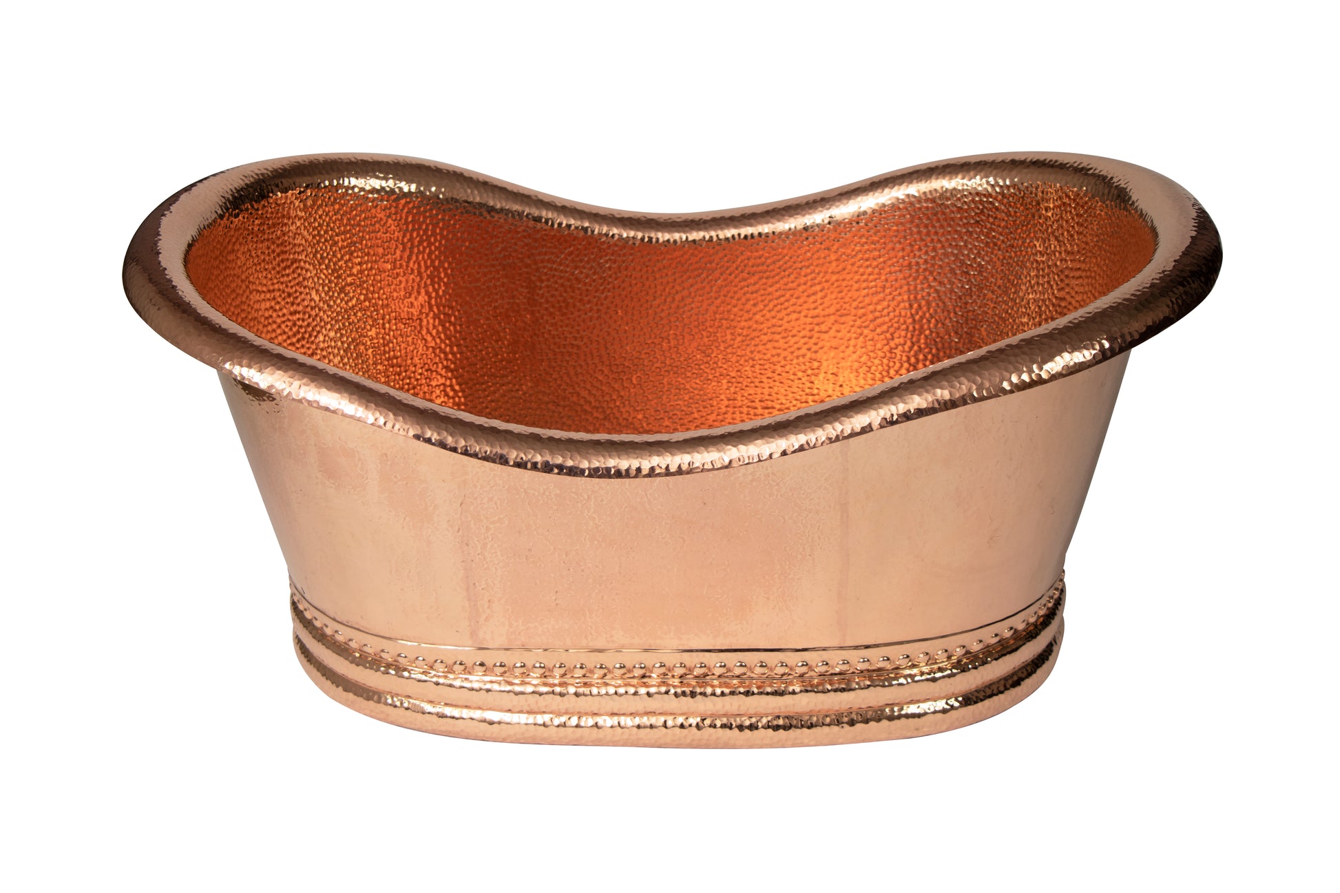 Shaped Hammered Copper Cooler with Shiny Finish and Rolled Lip"