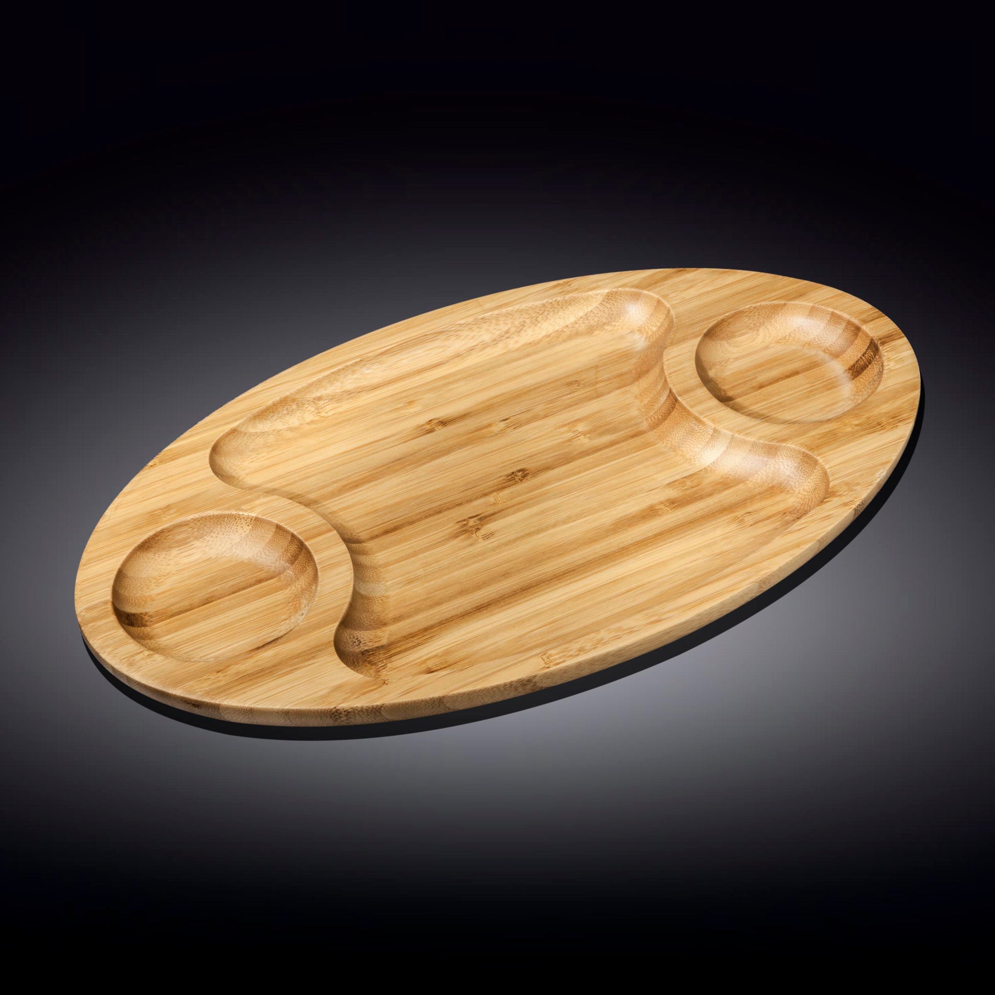 Bamboo 3 Section Platter 18" inch X 10" inch |For Appetizers / Barbecue / Burger Sliders