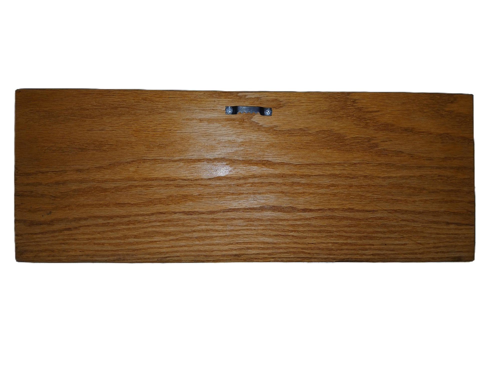 A creek and nature scene burned into oak wood. The oak wood has a sawtooth hanger on the back for hanging on the wall. Measures 15.5" wide x 6": tall.