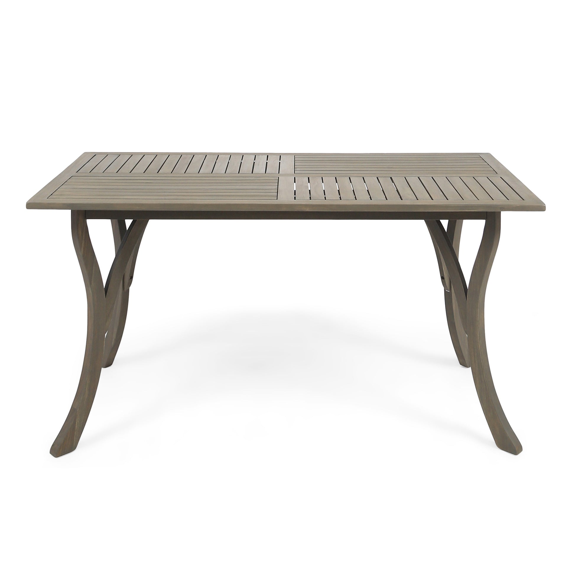 Enjoy a serene outdoor supper upon a centerpiece with a striking silhouette. Crafted from rich acacia wood, our stunning dining table offers your backyard or patio space a stylish place to enjoy an afternoon barbeque or a hearty evening meal.